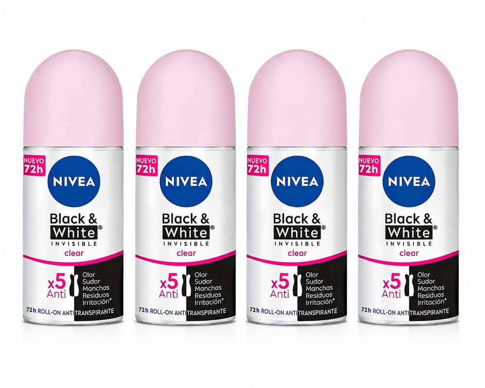NIVEA BLACK & WHITE Antiperspirant - 4 PACK Roll-On 50ml